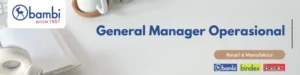 Posisi Jabatan : General Manager Operasional Berkaitan : Admin, sosial media dan penjualan online Deskripsi Pekerjaan : Kelola pertumbuhan dan capai target bisnis Memperluas target